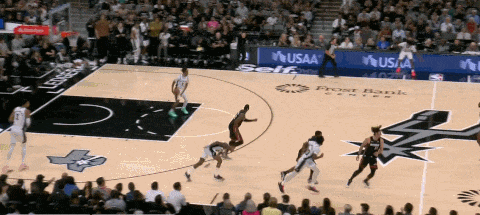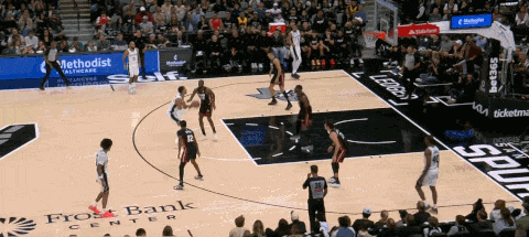 随后马刺转换了一下思路,改用文班站位底线扣篮点,由巴恩斯去弧顶给后卫掩护发起,接球后又是前边的维金斯迅速回防,和阿德巴约合力防下巴恩斯篮下的出手。